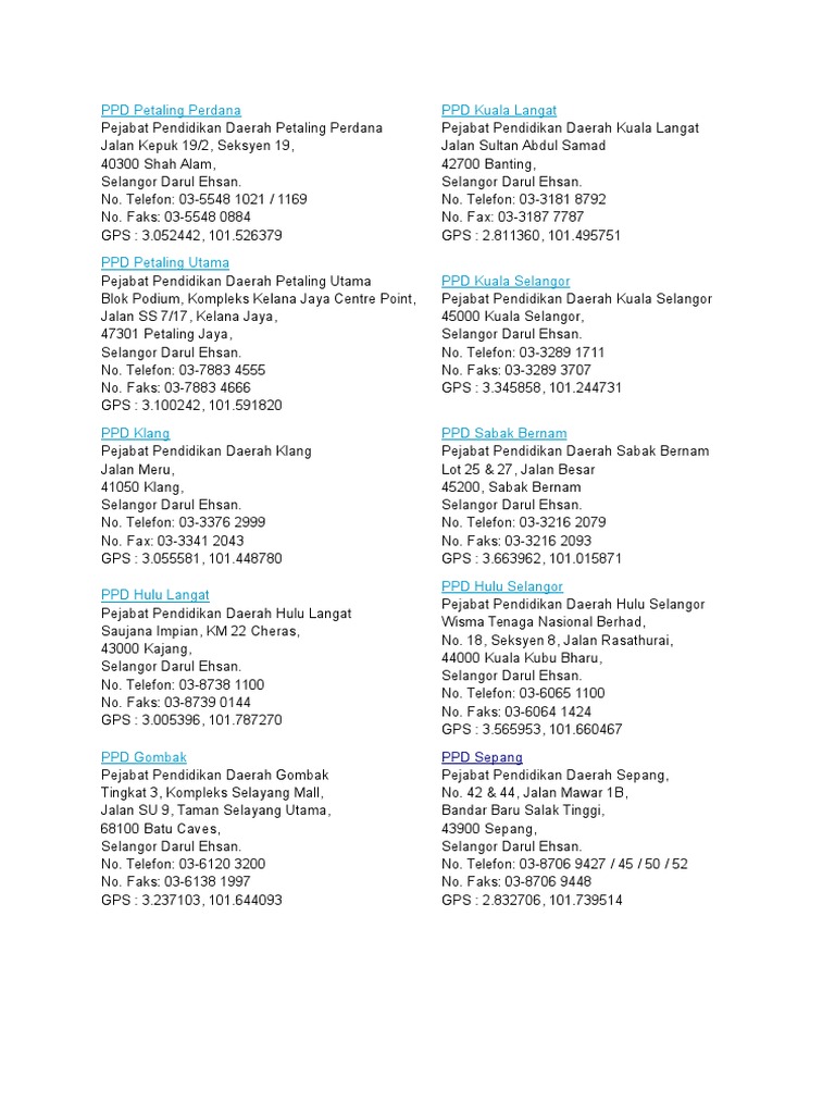 Senarai Alamat Ppd Selangor Pdf
